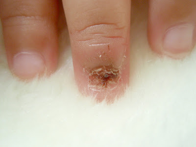 現在手術已經完成一個星期了,妹妹復原的狀況非常好,原先醫生擔心她會痛,所以開了特別的止痛葯給她,但是她一滴都沒有吃,不僅不痛,還開開心心地玩,好像沒事一樣。只有在剛開完刀的那天傍晚,她皺著眉頭告訴我:「手手痛痛了!」但是說完後又繼續玩她的去了。還有兩天前,她看著她的指頭說:「好可憐。。。」我問她什麼好可憐,她指著手指頭說:「這個跑出來了。」大概是看著那個不成形的痂,不知道該怎麼說才好。