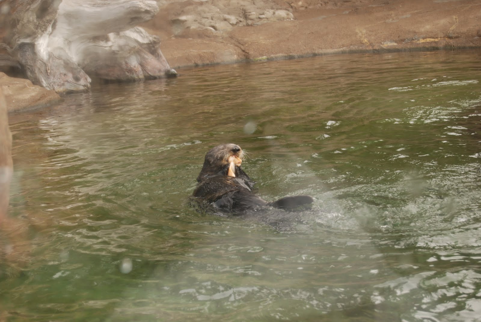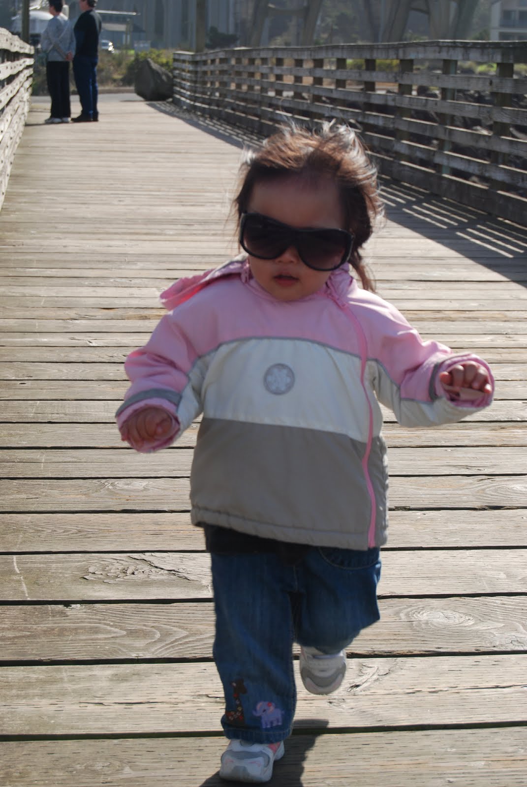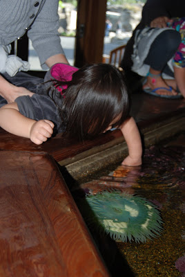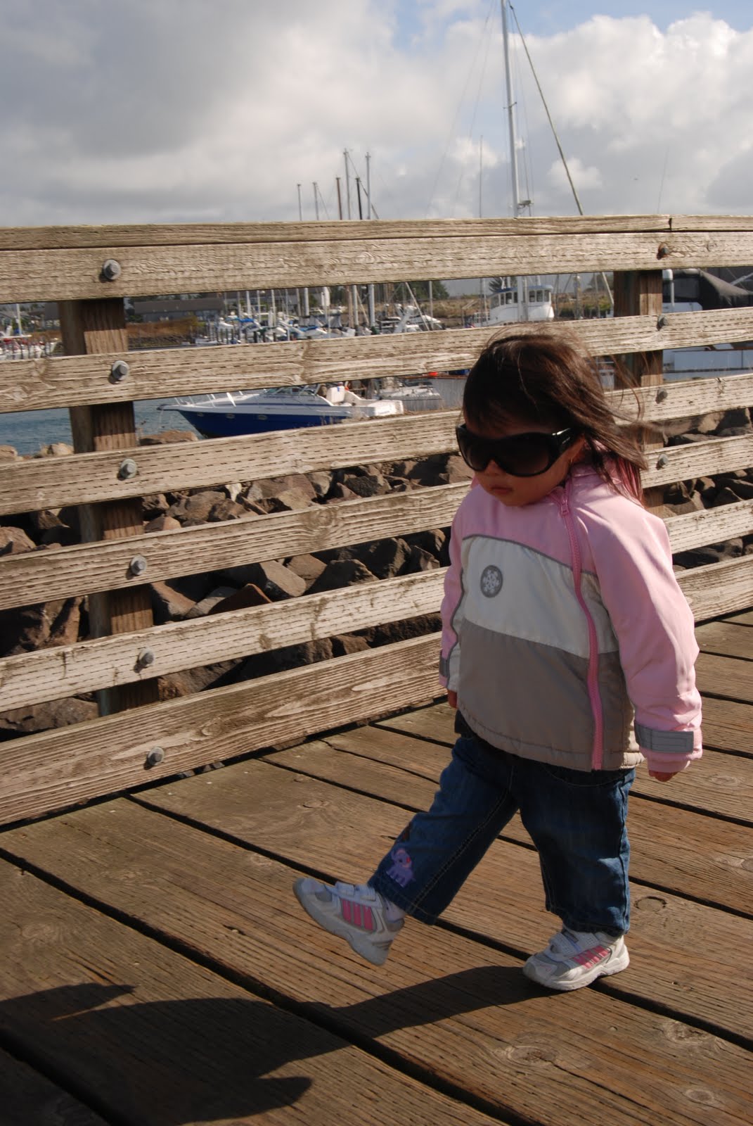 由於我們事先已經告訴妹妹我們要到海邊去渡假,要去看海獺和鯊魚,所以她幾天前只要一上車就開始唸:「我要去海邊嗎?」聽說這次真的是要往海邊出發了,更是興奮得不得了,一路上小嘴沒停過。