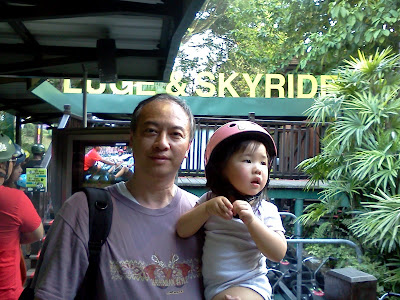 這個斜坡滑車的票是附送的,原先以為妹妹會害怕,所以有一點猶豫到底要不要玩,後來發現似乎不太危險於是決定玩他一趟。照片中妹妹等著要上車了!