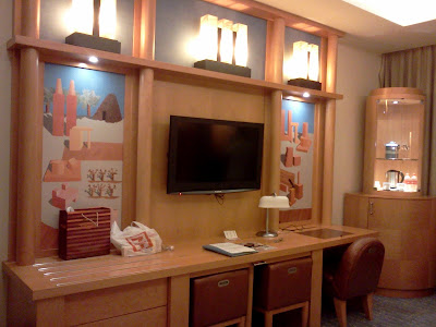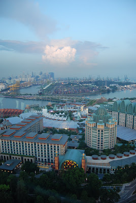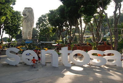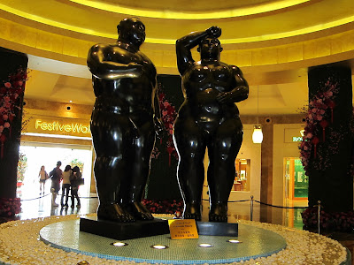 我們住的旅館是Hotel Michael,就在聖陶沙的名勝世界(Resort World)。飯店高級舒適,從後頭一走出去就是餐廳,名店,環球影城,及各個遊樂設施,出入有單軌列車(飯店附送三天的車票),非常方便。到新加坡之前有人告訴我,住在聖陶沙離新加坡市區比較遠,不如換到市區的飯店,但是我反而覺得這兒適合遊玩住宿,如果我下次再來,還是願意再來這兒。圖為飯店大廳裏的亞當夏娃塑像。
