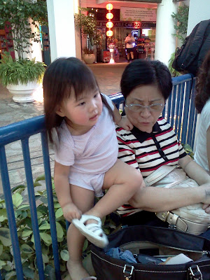 回來的時候是搭纜車,妹妹跟我們一起東看西看,還跟外婆揮手照相,真是勇敢。不知者不罪,妹妹又坐了一趟霸王車!
