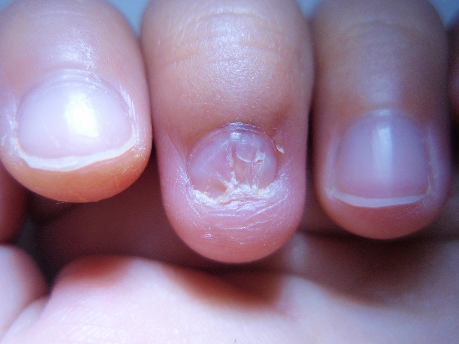12/30/2011 指甲尖端有很明顯地分叉,曾經因此卡住外物而受傷。