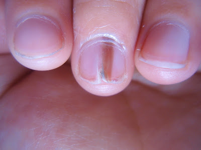 11/28/2011,手術後兩個半月,很明顯地指甲中間有一道陰影。