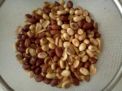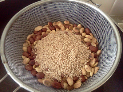 加上一大把熟芝麻。還好買得到熟芝麻,否則炒完花生炒芝麻,哇哩咧。。。