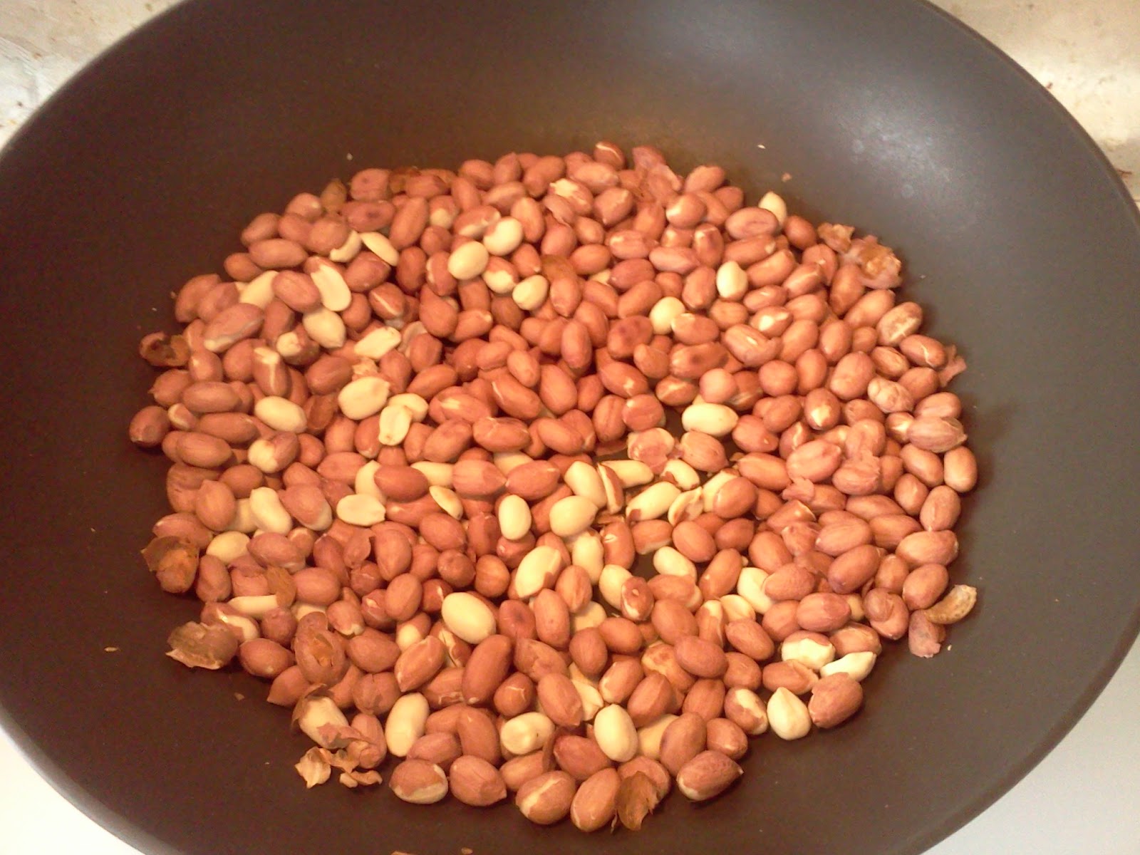 12OZ 花生一包,帶皮不帶皮皆可。在臺灣可以買到已經炒好的花生,這裡只有自己動手炒了。