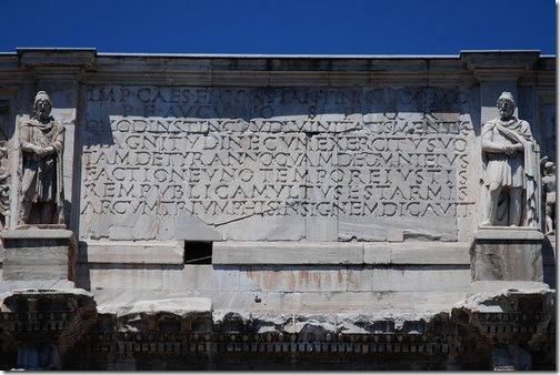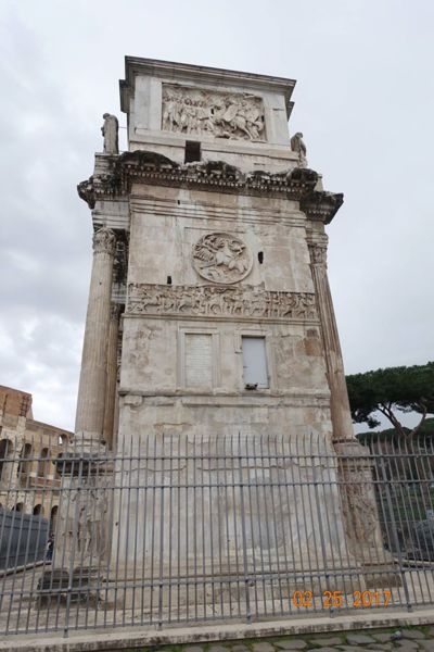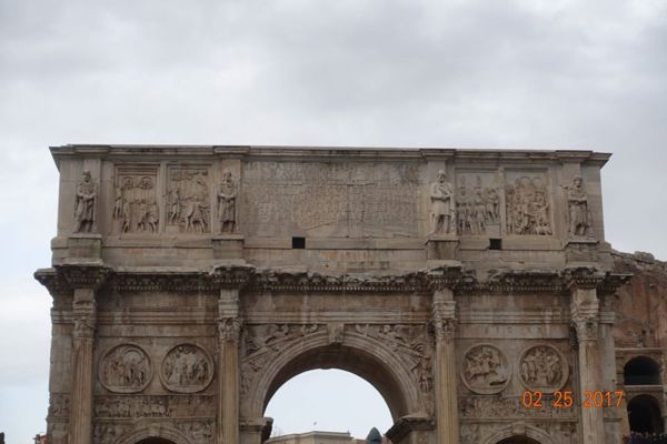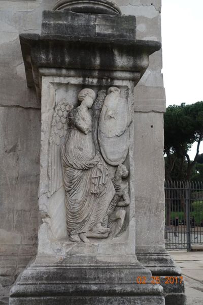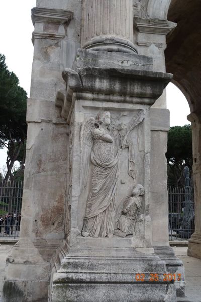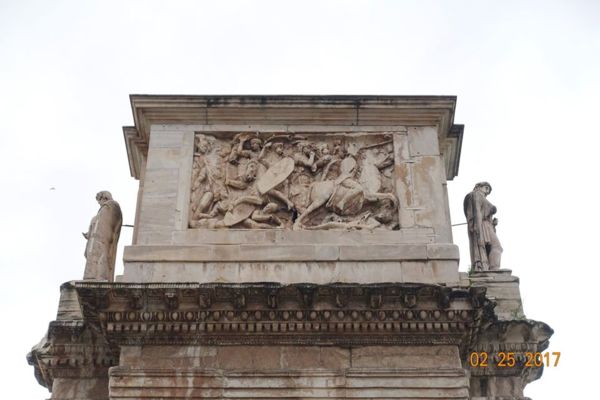 這個凱旋門所雕刻的圖案和基督教其實毫無關係,凱旋門上的紀念牌樓、雕像、圖案、浮雕大多是取於更早的紀念碑,其中有些是達西安人(Dacian)被俘者的雕像,拱門內側的浮雕則講述圖拉真皇帝打敗達西安人的故事,都與基督無關。