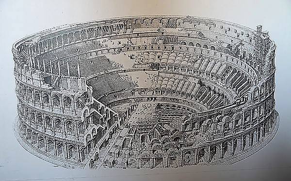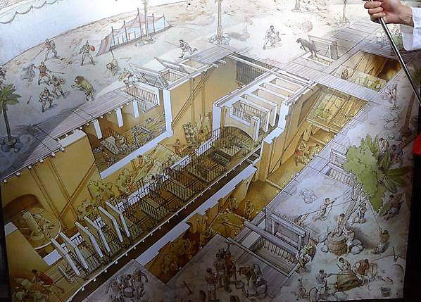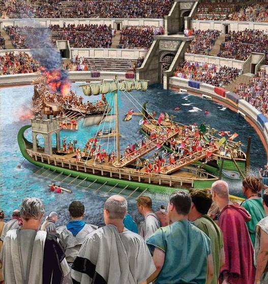 事實上猛獸與角鬥士待命搏鬥的房舍,是以後才加蓋的,原先沒有的時候,圓形競技場是可以舉辦海戰表演的(網圖)引用自〝嘻辣人的擺寶箱〝