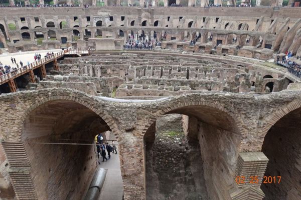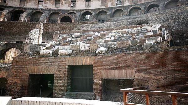 除機關、獸籠、武器等,牆邊有30個通向地面的門洞,門洞除了是地下室的光源外,也利用先進的「人工電梯」來運送猛獸上場(操縱滑車和繩索來連接通道、開啟大門,將籠子由地下室升到競技場地面上);Arena與看臺落差的周邊牆上,有防止猛獸逃脫所設的射擊守衛眼洞,前方還有一圈金屬網,用以圍住猛獸。