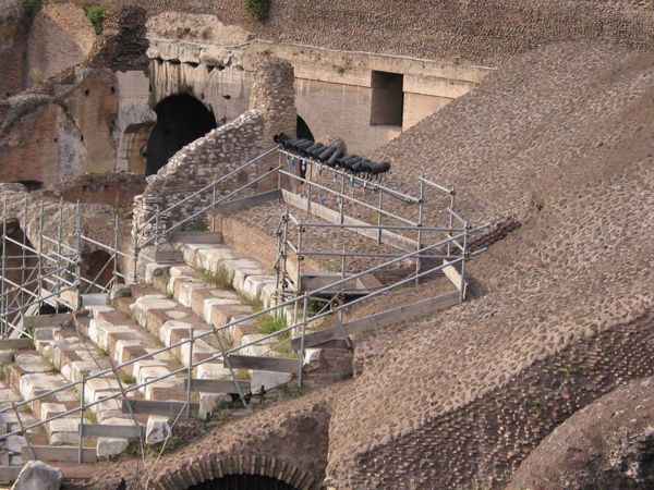 觀眾席前3層為大理石座位,第4層則為木頭結構,以減輕對外牆的推力。 這一區仍可看出原先的座位樣貌(網圖)