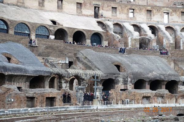 1723年時,教宗在競技場中豎立十字架,以悼念所有在這座競技場死亡的人
