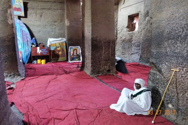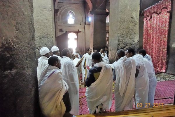Bet Medhane Alem教堂有5個中殿 ,但都不大,像這樣10幾個人就已略顯擁擠