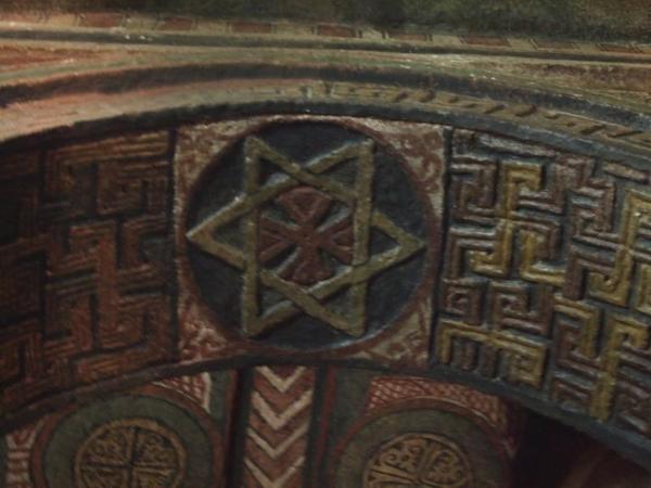 衣索比亞回顧139--地陪解釋Bet Maryam教堂外牆上的「卍」字符號