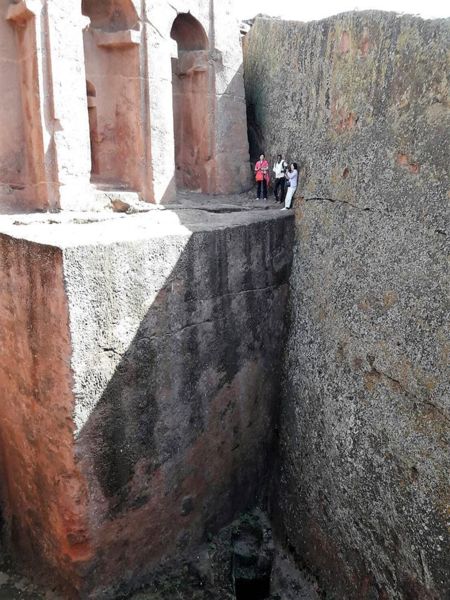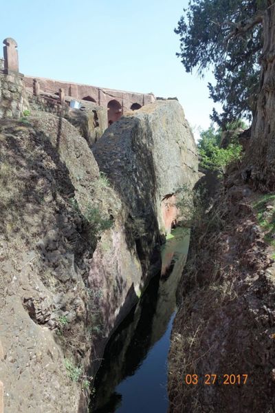 周圍的壕溝是防禦用的,因為據說這裡本來是國王拉里貝拉的住所