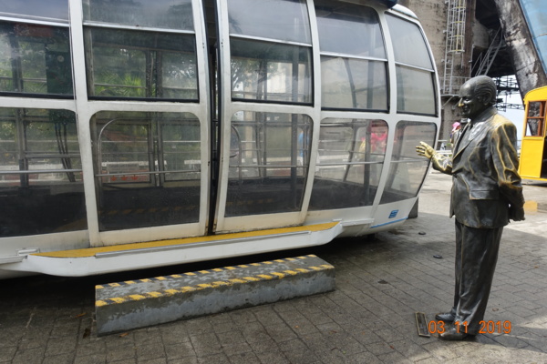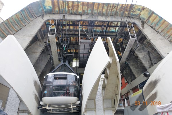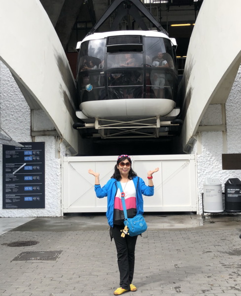 現在旅客搭乘的纜車是義大利製造,容量可達七十五人,並可提供三百六十度的視角。(在車廂內除了靠近窗戶的地方稍有涼風,其他地方因為擠滿了人,所以非常悶熱!)