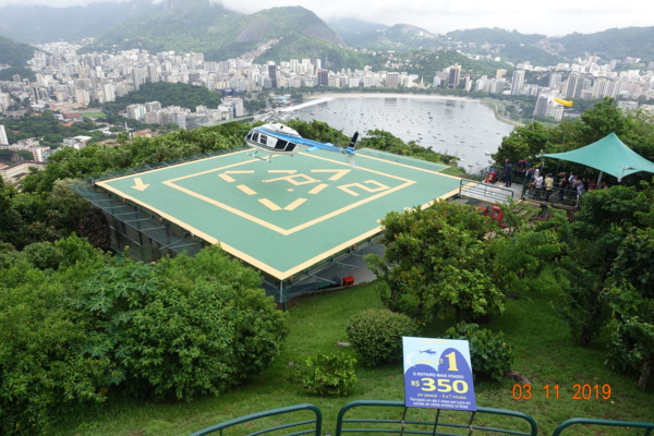 Urca Mountain 上面不只有餐廳,商店,還有一個巨大的直升機停機坪,如果想要的話還可以從這邊搭乘直升機看里約全景.--搭乘一趟約6.7分鐘,要價100美元!