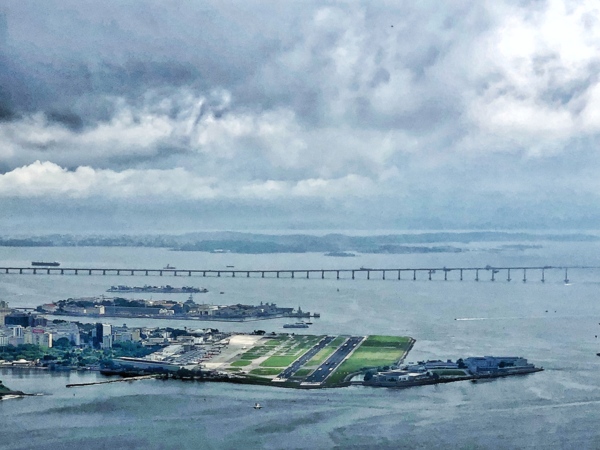 在麵包山上遠眺跨海大橋--尼泰羅伊大橋,全長14公里,它也是南半球最長的鋼筋混凝土大橋— 在里約熱內盧。