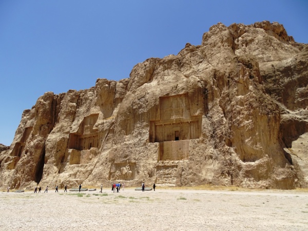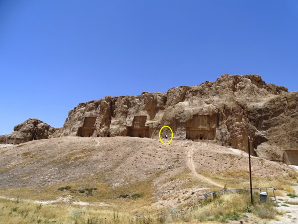 這裡就是阿契美尼德王朝連續四代國王的安息之地。(每個墓穴的正面都是高30公尺,寬15公尺的凹陷,中央的墓室則離地約20公尺。)看看山腳下遊客的比例,你就知道陵墓的巨大了!