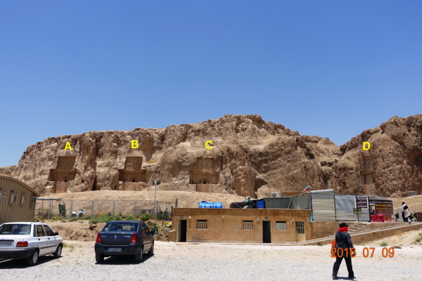 A--Tomb of Darius II(大流士二世) B--Tomb of Artaxerxes I(阿爾塔薛西斯一世) C--Tomb of Darius I(大流士一世) D--Tomb of Xerxes I(薛西斯一世) E--所羅門監獄(網圖)