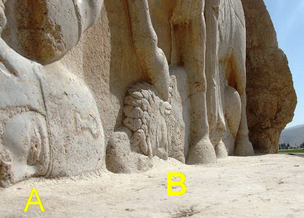 位在1號浮雕右邊的就是2號浮雕:巴赫拉姆II (Bahram II)的 “大人物”浮雕