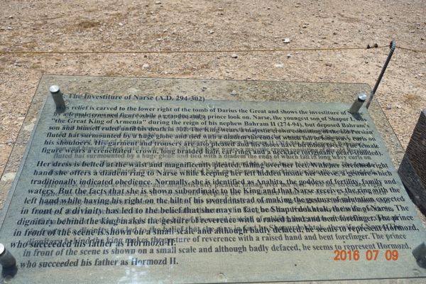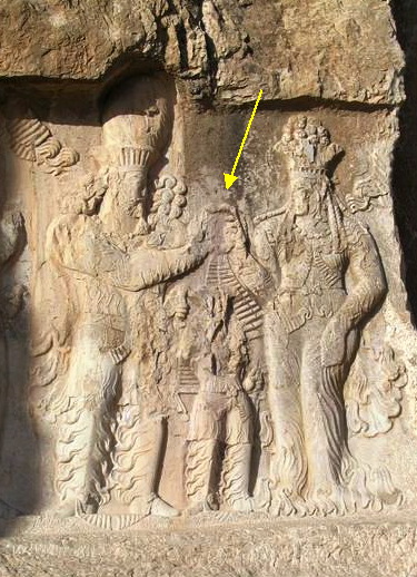 國王 Narseh(除了在Naqš-e Rustam之外,在其他地方並沒有看到關於納賽爾的浮雕。這並不奇怪,因為納賽爾國王在297年被羅馬皇帝加勒里烏斯擊敗,甚至被迫放棄亞美尼亞的部分地區。所以沒太多浮雕記載他的事蹟!)--網圖—