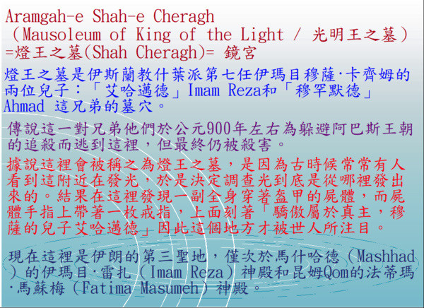 附帶說明一下:Shah Cheragh的意思是“光之王”