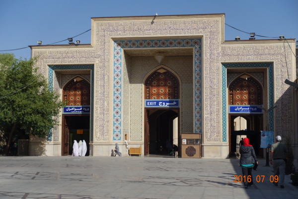光明王之墓的入口(伊朗的清真寺、聖祠等景點通常入口都小小的,隱藏在巷弄間,不甚起眼!但一進去之後才發現豁然開朗、別有洞天!)