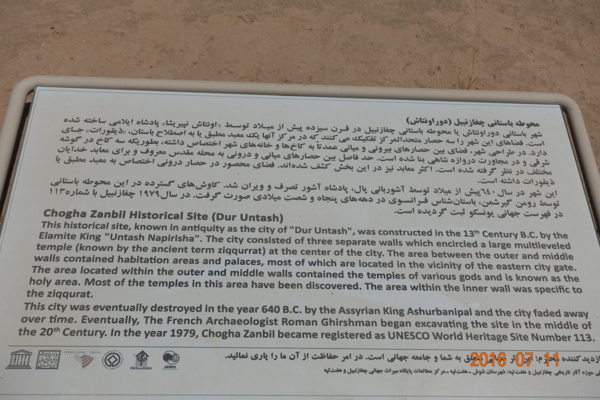 Chogha Zanbil這座城市是在公元前1250年左右由埃蘭Elamite國王Untash-Napirisha建立的,可能是一個宗教之都。在Chogha Zanbil受到尊敬的主要神靈是Inshushinak(蘇薩公牛神)