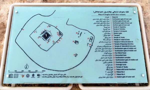 恰高占比爾神殿遺址區地圖 1ziggurat 2東南門 3 內南門 4 內東北門 5 內北門6 Napilisha寺7 Kiririsha寺 8 Ishnikarab寺 9西門 10寺組11皮尼基爾神廟12阿達多神廟和沙拉神廟13西穆托神廟和貝雷塔里神廟14納菲拉特普神廟15赫希米蒂克神廟和魯弗拉蒂爾神廟16中牆東北門17中牆東南門18努爾奎布拉托塔19封閉門20東南綜合樓中央牆的 西南門21 綜合樓 23水的使用設施 24努斯克神廟 25帶墳墓的宮殿25 第二個宮殿 27第三個宮殿 28外牆的東門