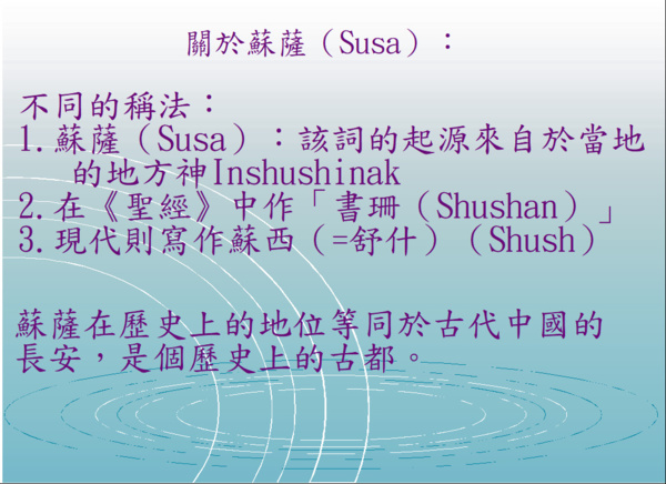 這一單元介紹的阿帕達納宮殿位在古城蘇薩,所以先簡介一下蘇薩!
