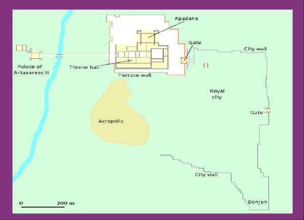 大流士一世(Darius I)約於BC 521-515年建造了這一座寬闊的宮殿建築群(作為他的冬宮),而後在其兒子薛西斯(Xerxes)的領導下繼續進行建築工程,但在其孫子薛西斯一世(Artaxerxes I)統治期間(465-424 BCE)宮殿被大火燒毀,而後在薛西斯二世Artaxerxes II(404-358 BC)統治期間完成遺址的部分修復。