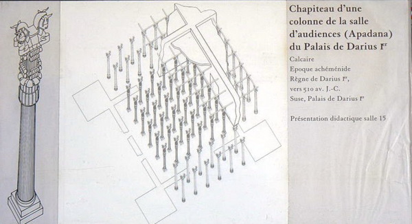 覲見大廳有36根石柱,高20米。在支柱的末端,有類似於波斯波利斯的牛頭圓柱(網圖)