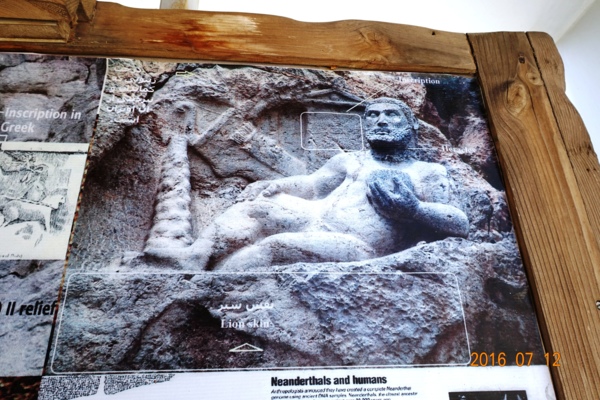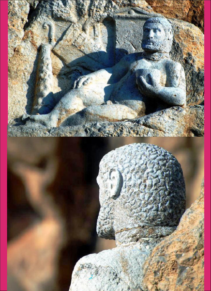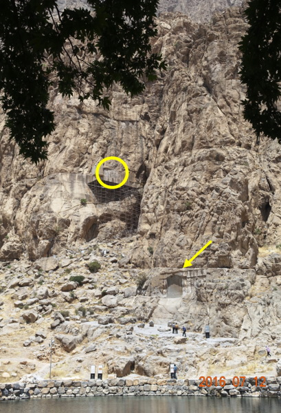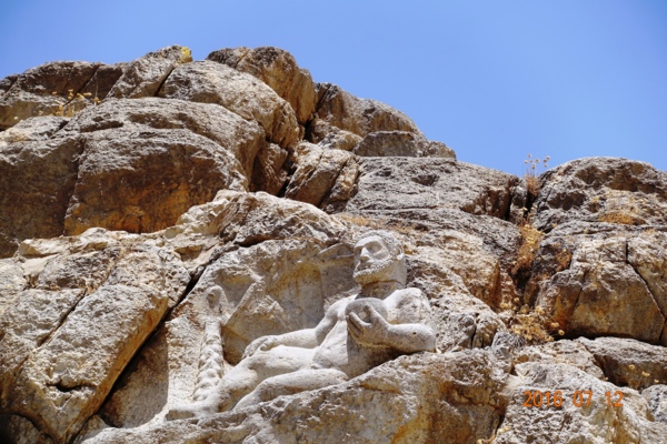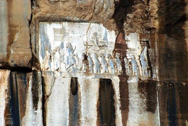 人像淺浮雕的下面白閃閃的一片即是比索頓Bisotun銘文--網圖