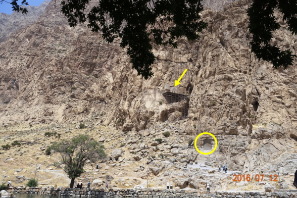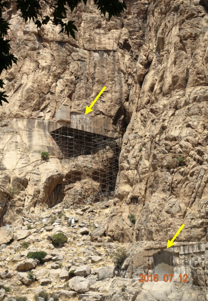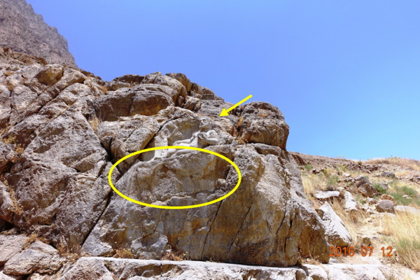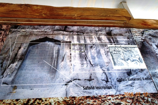 銘文和浮雕位於札格洛斯山脈上一處人工開鑿、難以攀登的懸崖峭壁之上,銘文底部離地有105公尺高!