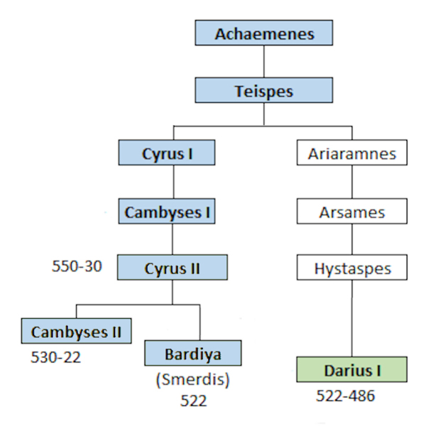 近代研究古波斯歷史的主流學者比對各種文獻後提出懷疑:大流士腳下踩的那位老兄其實並不是叛亂者,而是在岡比西斯之後即位、貨真價實的波斯國王巴爾迪亞(Bardiya),大流士跟6個黨羽衝進王宮所做的也並不是撥亂反正的義行,而是弒君奪位的叛變,所以他跟浮雕中那9個被綁起來被殺頭的人所做的事情根本半斤八兩,唯一不同的是,他那一年打了19場戰役,擺平了那9個人,坐穩了王位!所以這個銘文給後人的另一個啟示是:歷史,是嬴家在寫的!--網圖