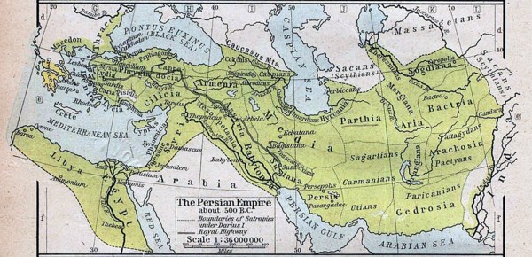 銘文中還提及阿契美尼德帝國當時的版圖(綠色部分)--網圖