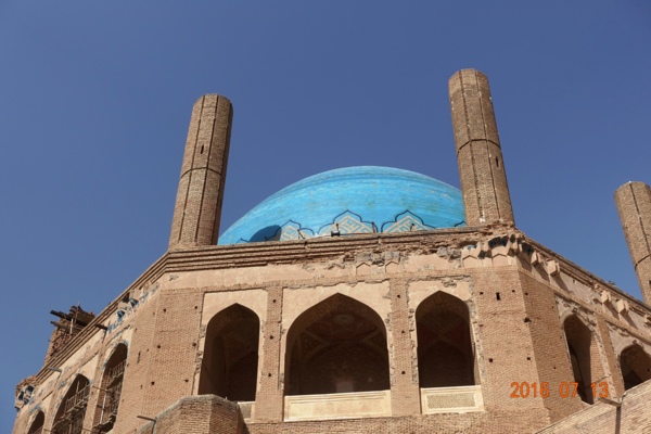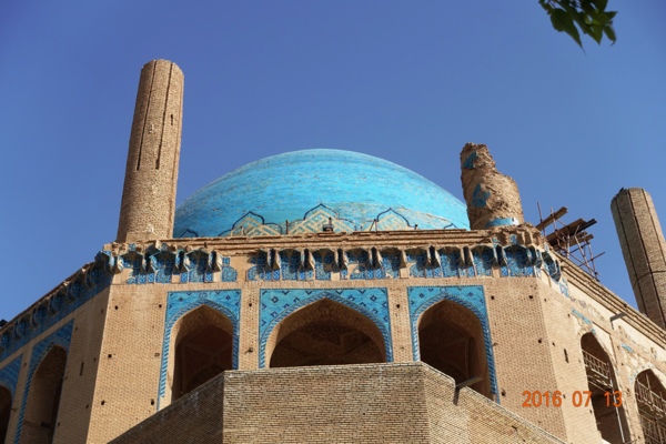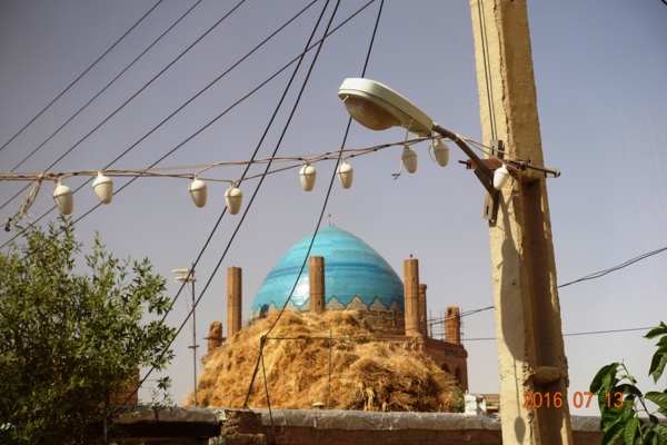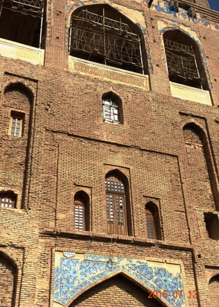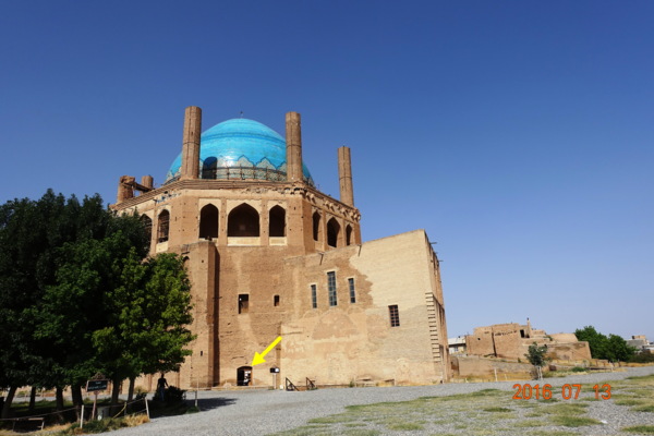 這是陵寢的後門。 伊兒汗國為蒙古族,原本信奉佛教,到處都有喇嘛寺。但統治伊朗時,為了「以夷制夷」,定伊斯蘭教為國教。奧力葉圖當時建造陵寢,欲迎回安葬在伊拉克的什葉派英雄阿里(第4任哈里發、亦為什葉派第1代伊瑪目)。但伊拉克人民反對移靈(伊瑪目的靈寢在那裡.那裡就是什葉派的聖地),於是便改為皇帝自己的陵寢。