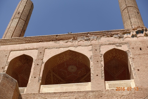 看到裡面的圖案了嗎?奧力葉圖陵寢最令人驚艷的是在上層迴廊上方使用紅色陶片設計的數十組幾何圖形. 圖案都沒有重複,已達出神入化的境界!