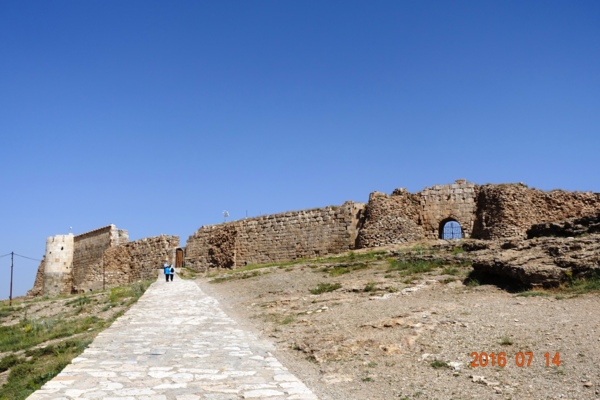 沿著陡坡朝遺址區邁進
