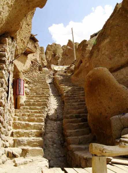 坎多凡村(Kandovan)位於大不里士之南57公里的山區,海拔2200米,整座村莊是在火山岩上開鑿出來的岩穴,就像土耳其的卡巴多其亞(Cappadocia),雖然其規模沒有卡巴多其亞面積那麼廣大,但是坎多凡目前仍是有村民居住的村莊。
