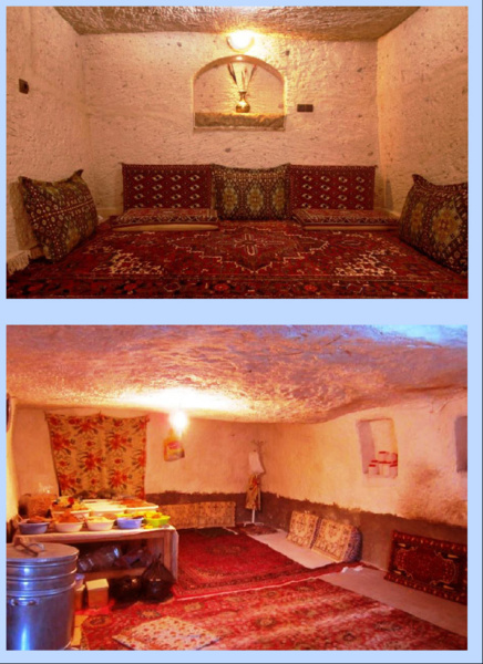 坎多凡人將他們的窯居修建在火山灰形成的圓柱形岩石中,遠看很像一個巨大的白蟻穴(或是倒過來的甜筒)。每個窯洞大都設計成2-4層樓高,冬暖夏涼。人們在底層飼養牲畜,中間兩層用來居住,頂層則作為儲藏間。--網圖
