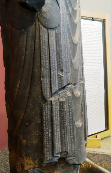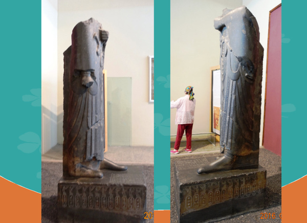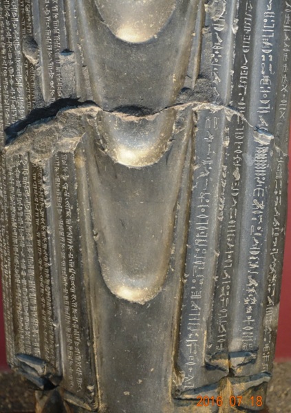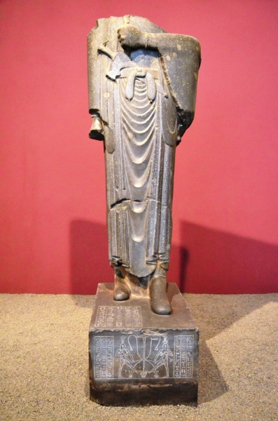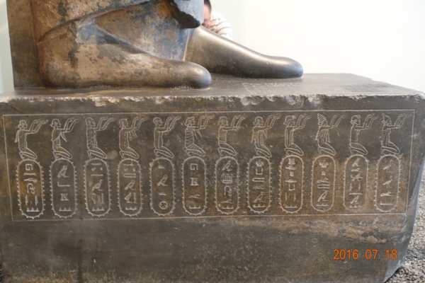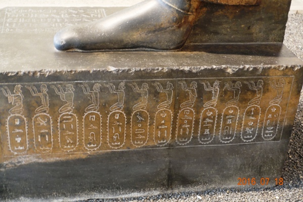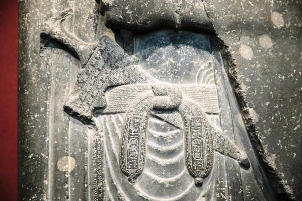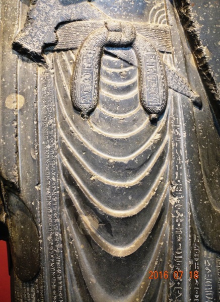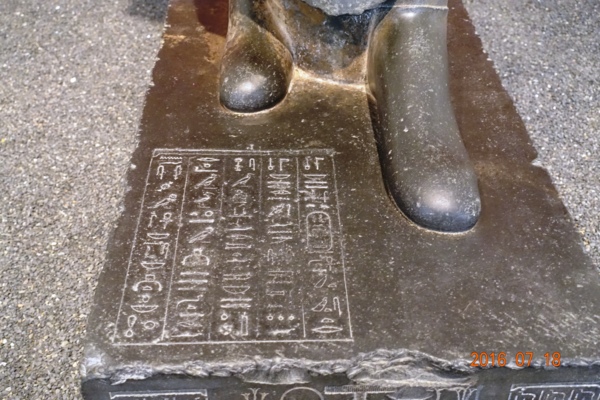 雕像的袍子上用埃及語、古波斯語、埃蘭語和巴比倫語四種文字刻著國王大流士的名字