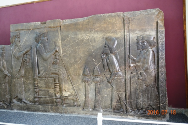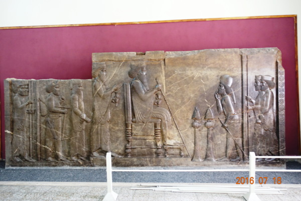 這塊浮雕是使臣進貢圖: 大流士一世(坐的那位)正在接受群臣和外國使節的朝拜