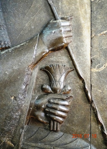 把手放在唇邊是表示致敬! 前面兩個是香爐。