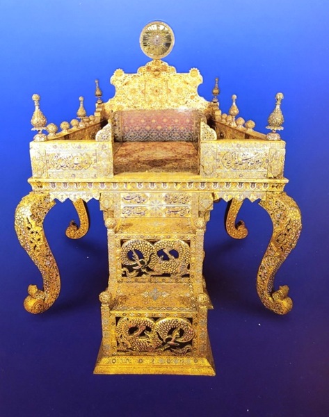 現在在博物館內看到的這個寶座是由法特赫-阿里沙·卡扎爾Fath-Ali Shah Qajar(伊朗卡扎爾王朝第二代君王)下令製作的,又稱“太陽寶座”,是因為其頂部鑲嵌有寶石的太陽。