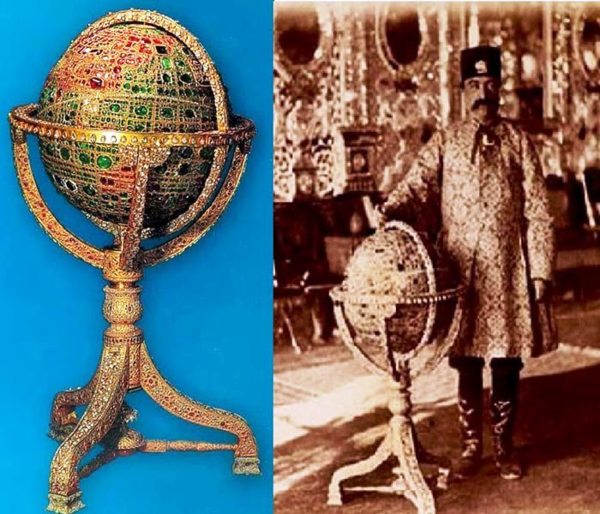 這個「寶石地球儀」,是由伊朗國王納賽爾·丁·沙赫(Naser al-Din Shah)在1874—1875年間委託珠寶匠製作的,主要目的是為了保存散放著的寶石。(所以說穿了,這就是國王的玩具!)