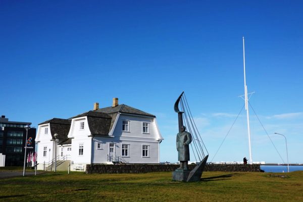 雷克雅維克市是冰島的首都,也是當年維京人初登冰島之地。傳說在公元874年,挪威的维京人探險家英格爾夫‧阿納爾森(Ingólfur Arnarsson)乘船在浩瀚的北大西洋海上漂流。在航行途中,他隱約看到前方海面上出現一塊陸地。出於對上帝的信仰和挪威人的傳統習慣,他將自己從挪威帶來的兩根聖座柱(氏族主人座前兩側有雕刻的柱子),朝著陸地方向拋入海中,他認為聖座柱漂浮到的地方,肯定就是上帝安排他居住的地方。帶著這種信念登上陸地後,他花了很久的時間,才在這個陸地的西南角找到他拋出的聖座柱,因此便在當地定居下來。