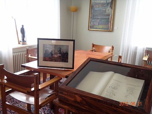 房子前的這根雕塑便是雷克雅維克首位挪威定居者當初帶來的聖座柱複製品(氏族主人座前兩側有雕刻的柱子)--網圖