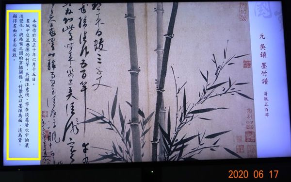 故宮第一展區107室展出的「墨竹譜」(元//吳鎮)