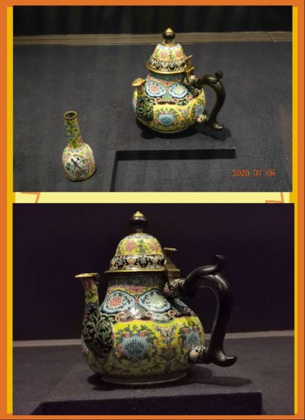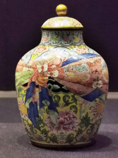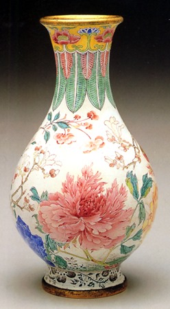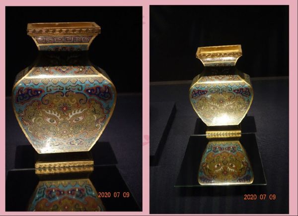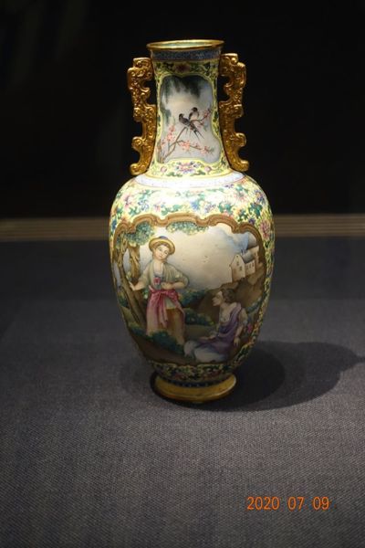 琺瑯,是將玻璃釉藥塗覆在金屬胎面焙燒而成,以技法來說,又分為「掐絲、內填、畫琺瑯」等三種