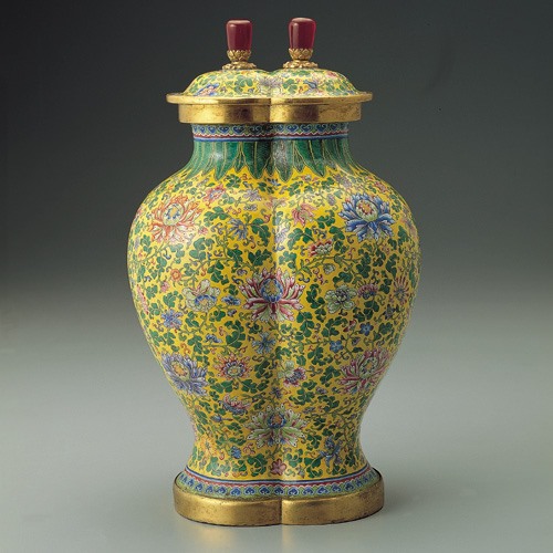 清 乾隆 畫琺瑯雙連蓋罐(網圖)